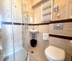 Pokój Ekonomiczny – standardowo wyposażony pokój dla 2 osób (2 osobne łóżka). Pokój jest klasycznie urządzony w cieplej kolorystyce. Hotel jest połączony z halą widowiskową Orbita. Pokoje ekonomiczne mają okna z widokiem na halę.